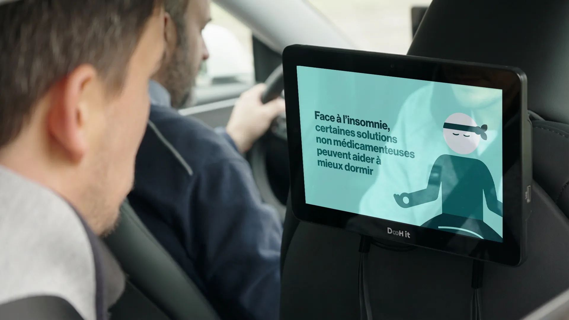 La campagne a été déployée du 17 au 19 septembre 2025 à Lyon, à l’occasion du Congrès des Experts-Comptables à Eurexpo. Le dispositif combinait 195 écrans DigiCab actifs diffusant la campagne sur des trajets géolocalisés (gares, hôtels business, Eurexpo) et 5 taxis événementiels privatisés, habillés aux couleurs de Qonto × Regate, assurant une présence physique forte à l’entrée du salon. Cette double activation a permis de toucher à la fois les visiteurs en mobilité et l’ensemble des participants sur site.